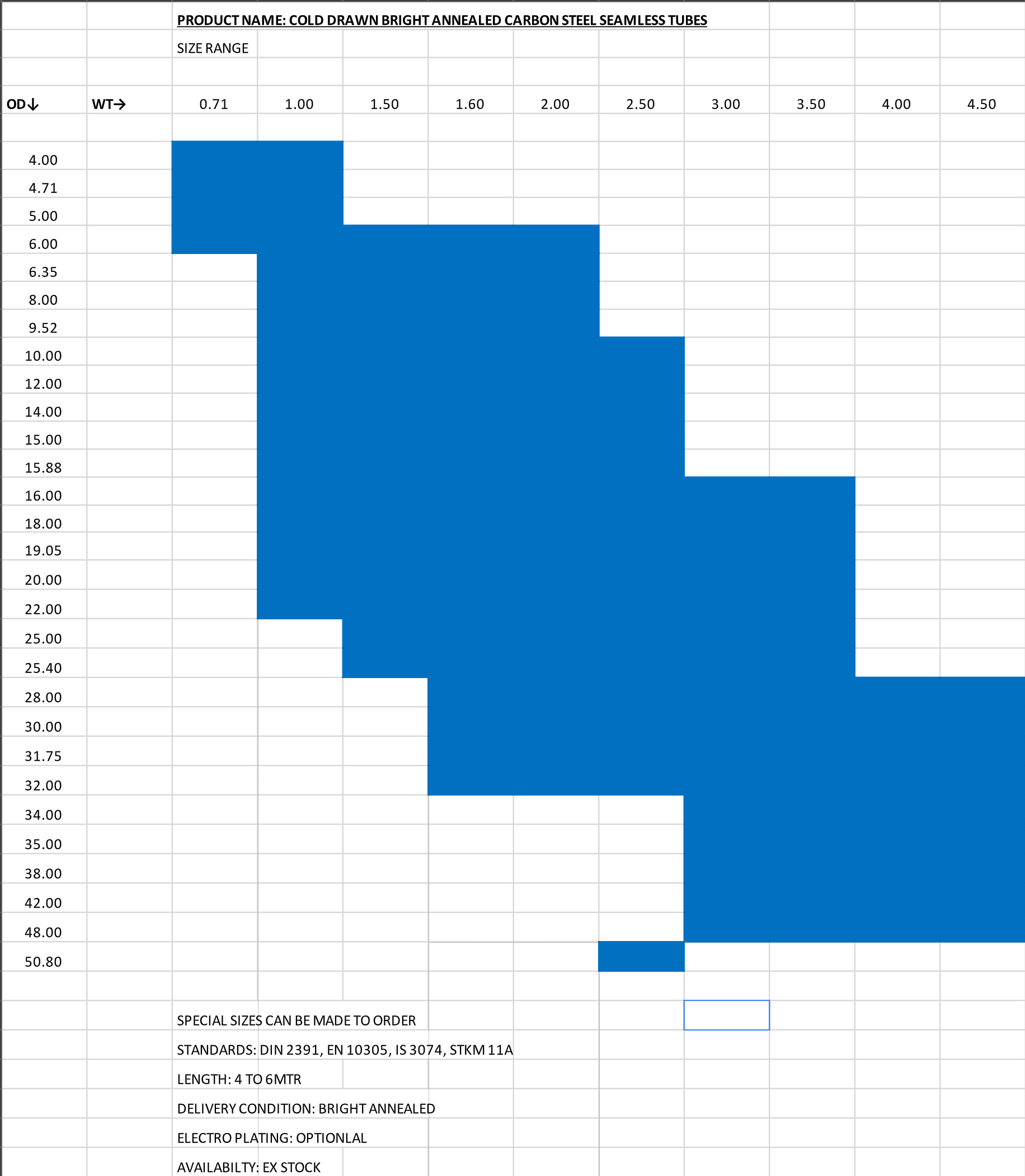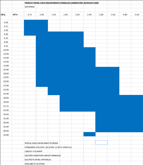 We make bright annealed seamless tubes suitable for power steering and brake line applications. These tubes confirms to IS and DIN/EN standards. These tubes have bright OD and ID surface finish and tested by eddy current and hydraulic pressure to ensure defect free product.